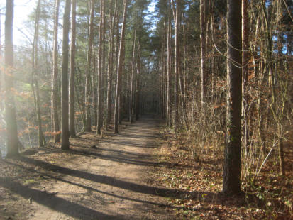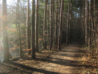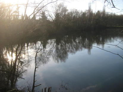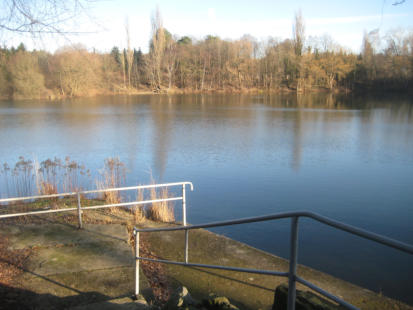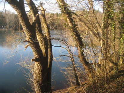 Für die Zeit „zwischen den Jahren“ fehlt an diesem sonnigen Tag nur noch eines, die von Schnee bedeckte Landschaft.Doch auch ohne diese weiße Pracht strahlt das Biotop rund um den Blauen See im fahlen, winterlichen Mittagslicht etwas unbeschreiblich Beruhigendes aus. Die Natur scheint im Winterschlaf zu liegen. Als Spaziergänger - besser noch zu zweit - genießt man die Einsamkeit in der Natur. Vor der Kulisse des Naturfreunde-Hauses spiegelt sich das Blau des wolkenlosen Winterhimmels. An solchen Tagen wird klar, wie der während des Schleusenbaues aus einer Kieskuhle entstandene See zu seinem Namen gekommen ist.