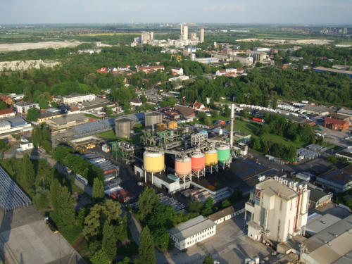 Blick nach Süd-Osten - Vorn Quickmix-Werk und Rußfabrik - rechts das