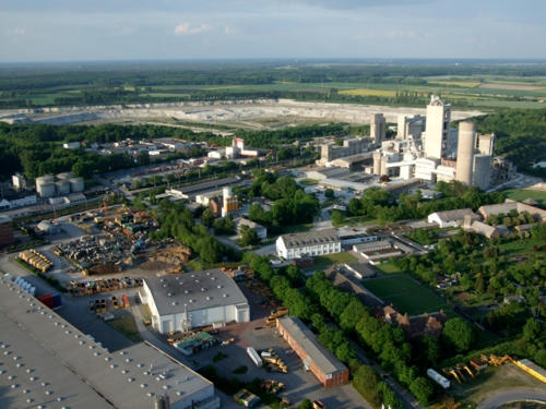 Gewerbegebiet Kreisstraße - im Hintergrund die Heidelberg Zement AG