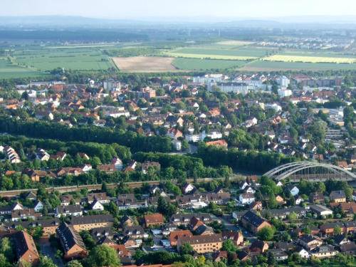 Blick nach Süden - vorn die Güterbahn - dahinter Misburg-Süd und das kleine