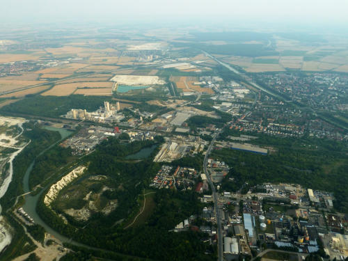 Blick nach Süden - im Vordergrund Werkshafen und Industriegürtel - im