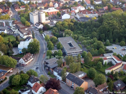 Mitte das Schulzentrum - rechts oben die Mülldeponie Lahe - links oben der