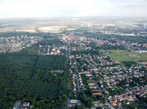 der kleine Stadtwald - darüber Misburg-Mitte und der Blick nach Süden