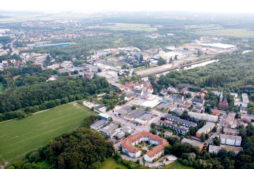 Blick nach Süd-Westen - im Vordergrund das Wohngebiet um die
