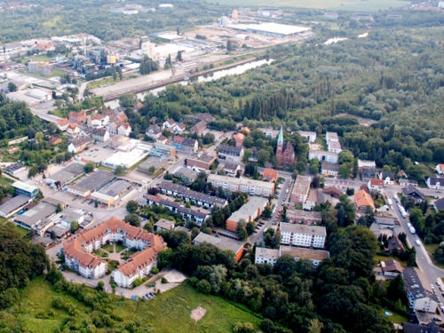 Blick nach Süd-Westen - der Mittellandkanal - im Vordergrund der Stadtteil