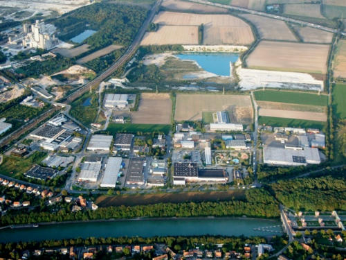 in der Mitte das Gewerbegebiet "Rothwiesen" - links oben die Zementfabrik