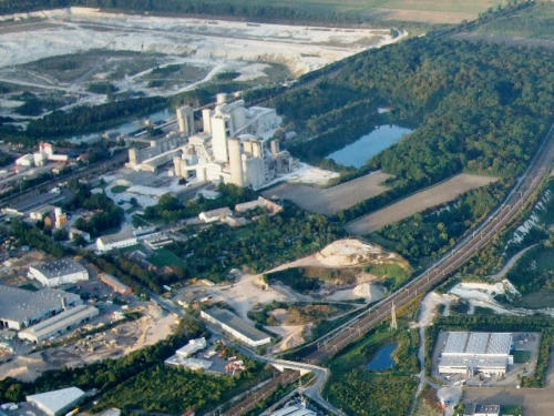 HeidelbergCement - links die Eisenbahnstrecke Hannover - Lehrte