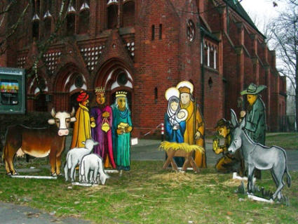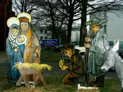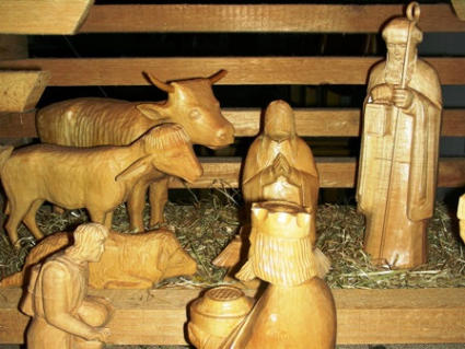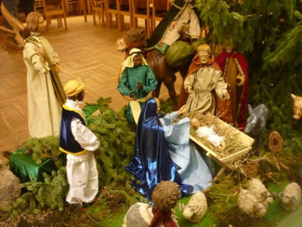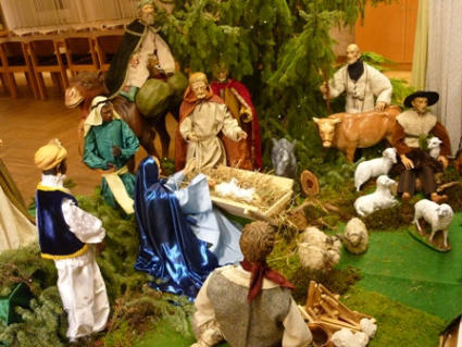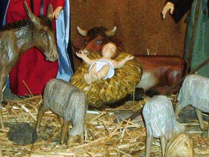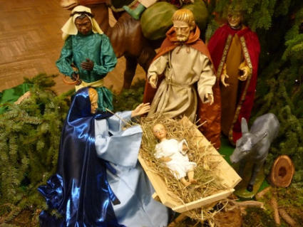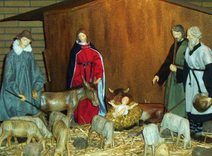 Windeln und legte ihn in eine Krippe, weil in der Herberge kein Platz