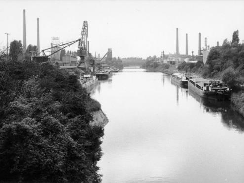 Blick nach Osten in den Stichkanal zu den Werkshäfen der Zementwerke