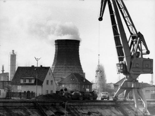 im Hintergrund der große Kühlturm auf den Südgelände der Deurag-Nerag