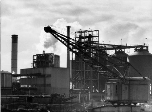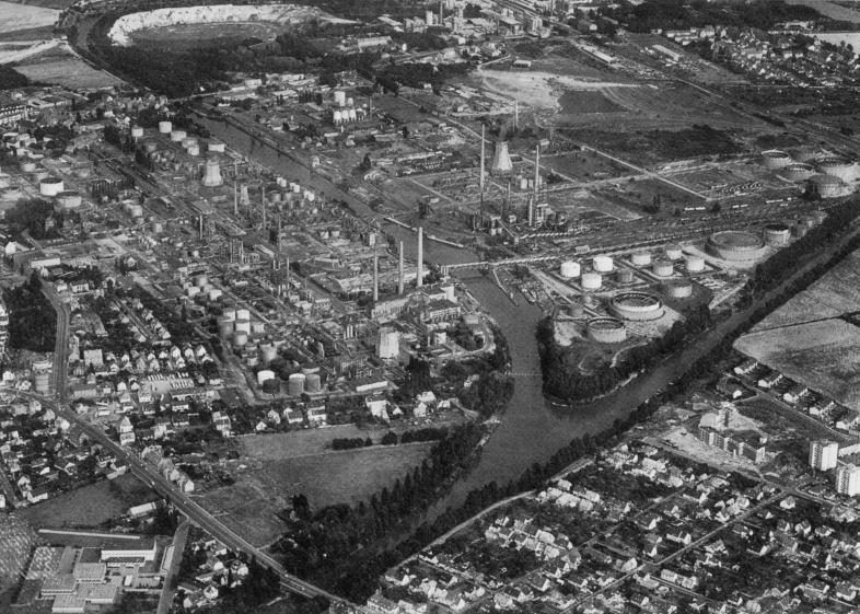 Blick nach Süden auf die Rußfabrik um 1970