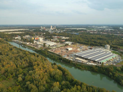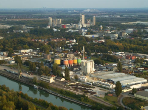Blick nach Nord-Westen auf den Misburger Hafen und die Deurag-Nerag