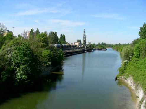 direkt dahinter zweigt der Stichkanal zum Werkshafen