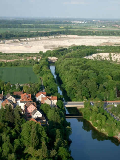 links das jetzt bewaldete ehemalige Gelände der Deurag-Nerag