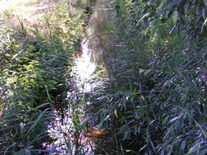 Bach - führt und komme an einer verlassenen Pferdeweide vorbei.