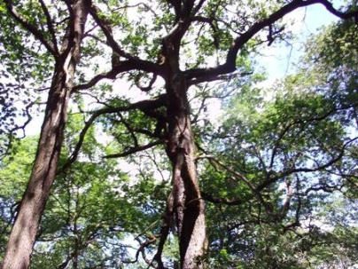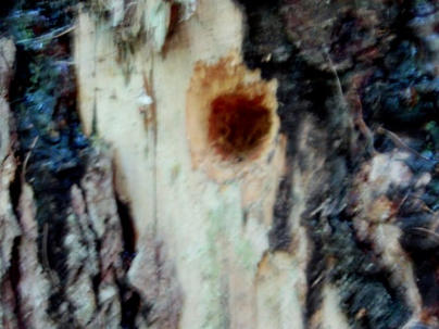 Baumstämmen sind Spuren von Spechten zu sehen. Überall gibt es Tiere, aber die muss man erst